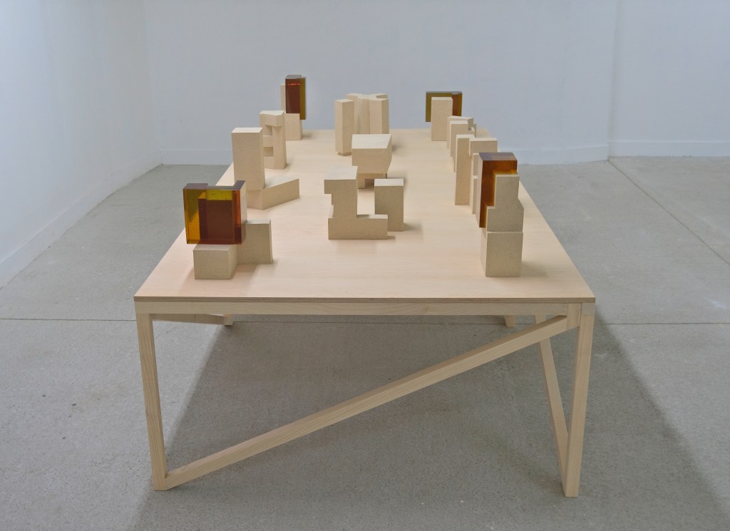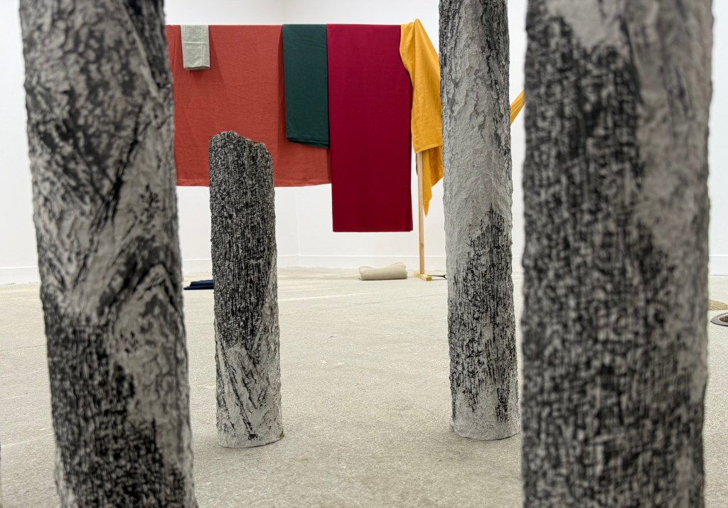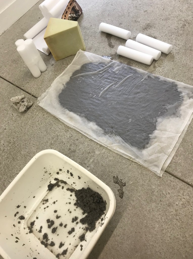 “Ça”, la forme, est bien présente à travers la pratique de la sculpture, de l’installation, du dessin et de la photographie. Les matériaux, principalement bruts, renvoient à ceux du bâtiment : terre, métal, bois, béton ; façonnés, cuits, cintrés, assemblés, coulés… Les gestes que nous utilisons individuellement sont proches de ceux des artisan·e·s, des façonneur·euse·s, car par bien des aspects, la fabrication des œuvres choisies ici a davantage trait à la construction. L’aspect esthétique est assumé sans renier le fait qu’il soit aussi vecteur de sens.