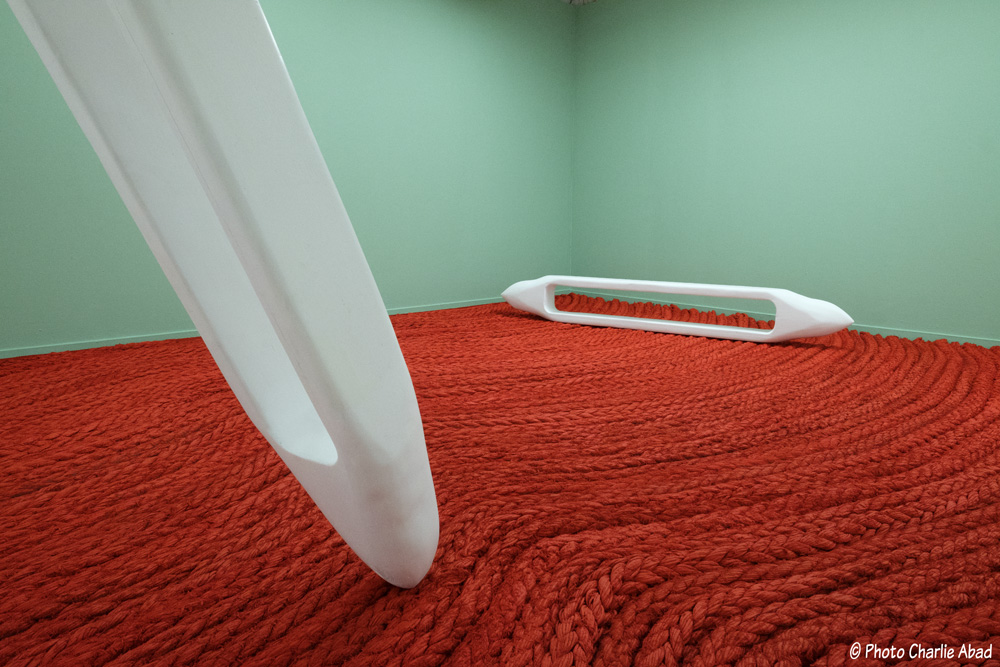 Ça n’est pas direct, ça se meut, ça glisse dans le palpable, ça découle d’une recherche englobant différents domaines (architecture, mécanique, science, nature…) qui résonne chez celles et ceux qui regardent avec une impression de déjà-vu.