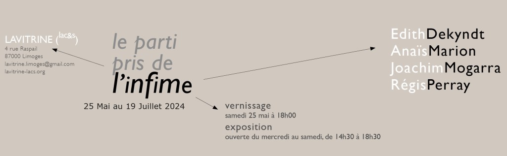 Du 25 Mai au 19 Juillet 2024, Lavitrine (lac&s) présente l’exposition « le parti pris de l’infime ». Engagée sur le fil du presque rien, du peu, de l’effacé, l’exposition propose de présenter une sélection d’œuvres inscrites à contre-courant du spectaculaire. Les œuvres d’art sont attendues habituellement dans ce qu’elles expriment d’extra-ordinaire, en ce sens qu’elles se démarquent de notre quotidien, qu’elles affirment un statut à part, ou bien qu’elles traitent de sujets singuliers. Ici, les propositions artistiques rassemblées proposent un autre engagement. Les « choses communes » semblent être préférées à la singularité. Le commun lui-même est exploré pour en trouver la part la plus infime. Cette part, que Georges Perec qualifierait peut-être d’infra-ordinaire, nous est ici montrée, révélée, affirmée, proclamée.