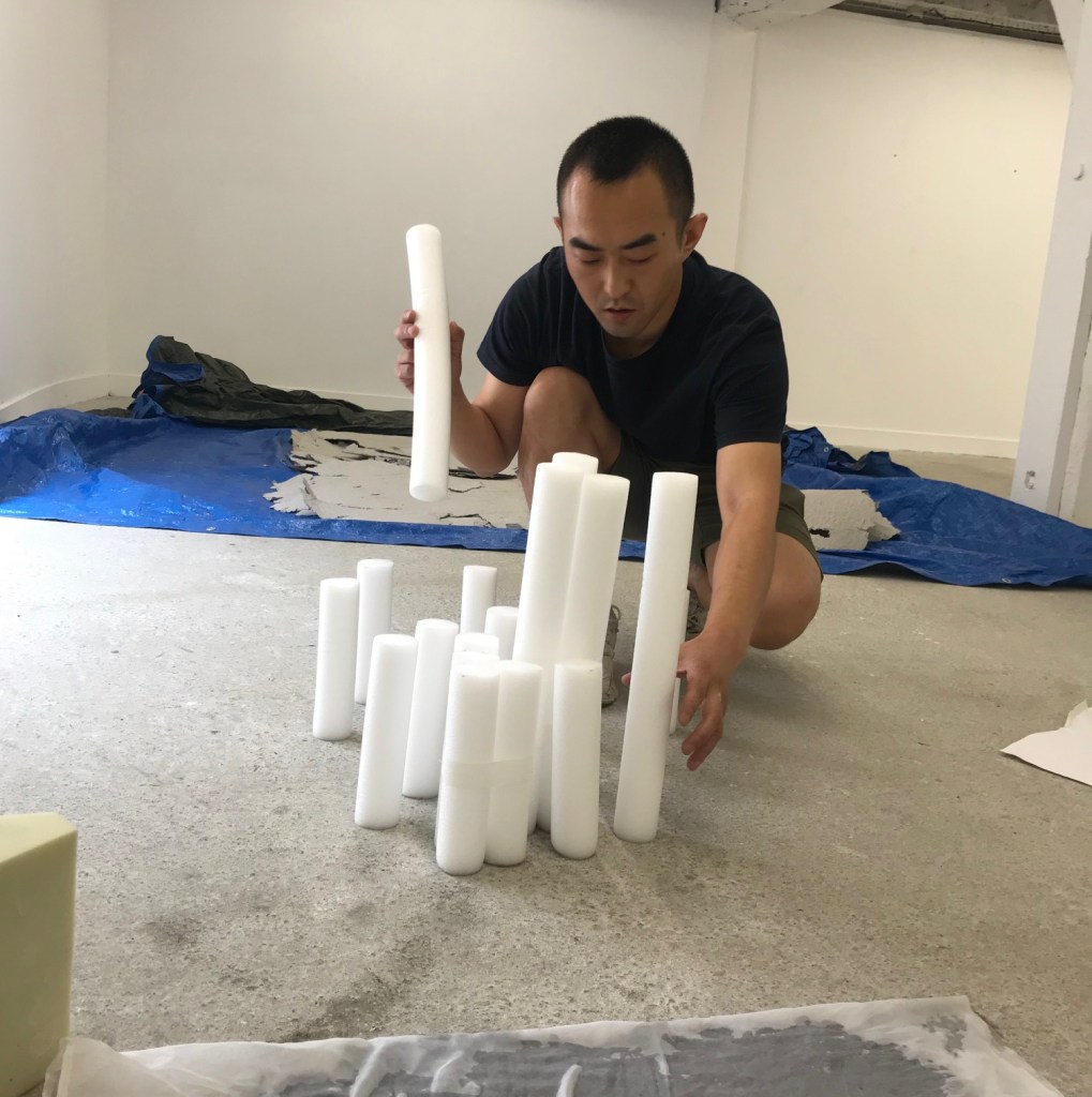 Yan Lou L’inspiration m’est venue lors d’une randonnée en montagne. La marche n’est pas seulement une pratique physique, mais une manière de percevoir : la respiration suit le relief, le regard se transforme au gré de l’environnement. Le choix du papier comme matériau principal répond à cette expérience. Léger et fragile, le papier peut pourtant porter des strates et des traces complexes ; ses fibres et ses textures évoquent à la fois la roche et la brume de la montagne. Par le pli, la teinte et le toucher, j’essaye de traduire la lumière et les formes rencontrées au cours de la ballade. Je ne cherche pas à reproduire le paysage, mais à tisser l’expérience de la marche, la mémoire sensible et l’exploration du matériau, invitant le spectateur à retrouver son propre rythme de perception.
